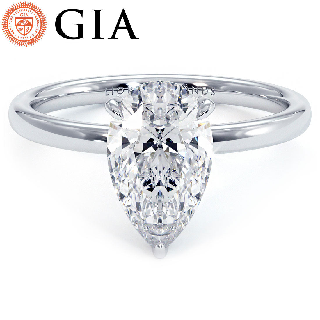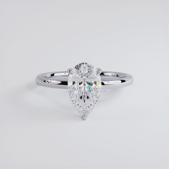 A classic petite micropavé wire basket diamond engagement ring set with 2.00 Carat Pear Shaped Lab Grown Diamond.