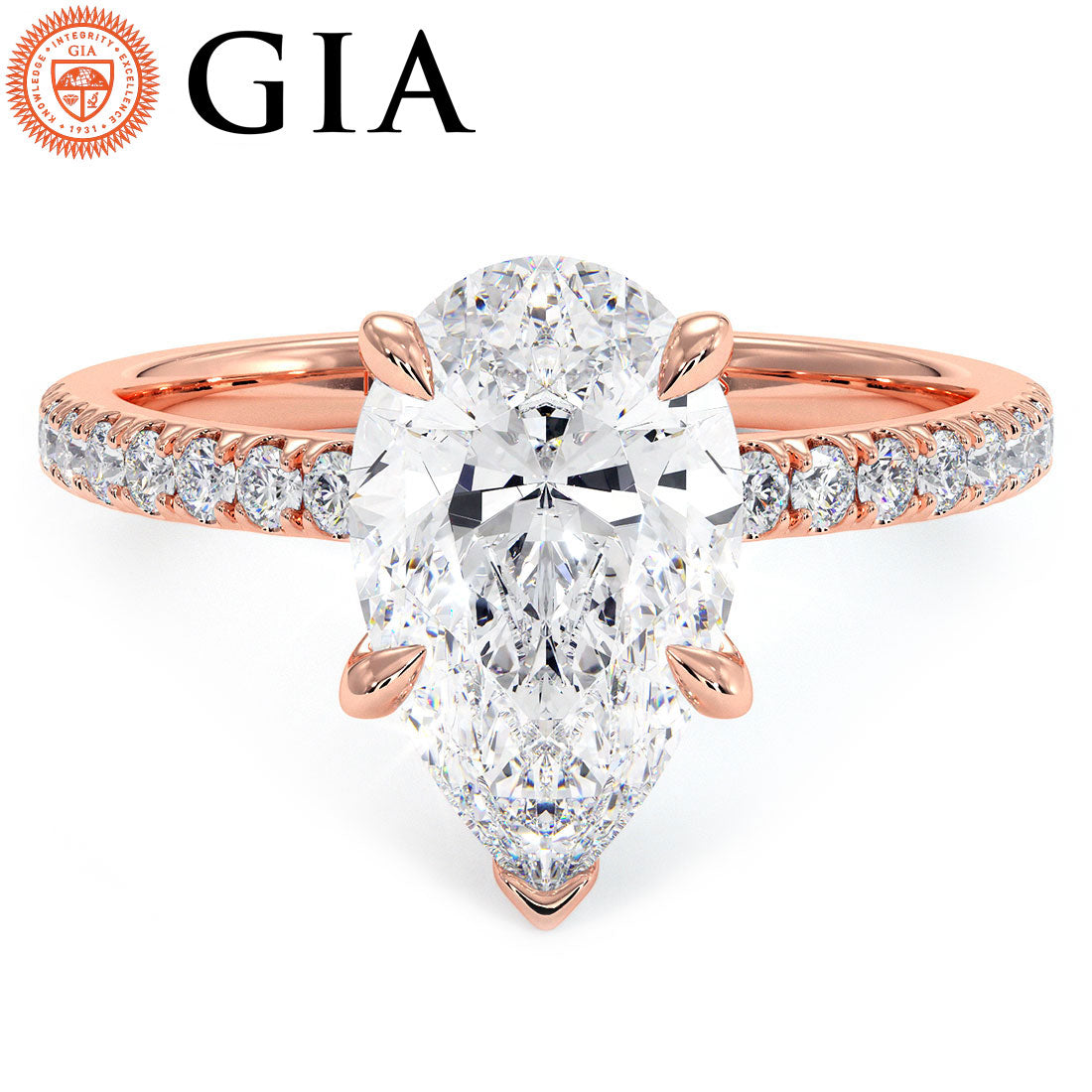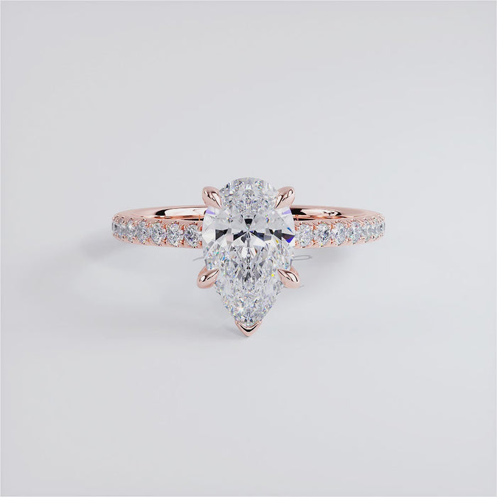 A classic petite micropavé diamond engagement ring set with 2 Carat Pear Shaped Lab Grown Diamond.