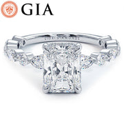 An alternating round & marquise diamonds engagement ring set with 2 carat Radiant cut lab grown diamond.