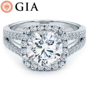 2 Carat Round Brilliant Halo Split Shank French Cut