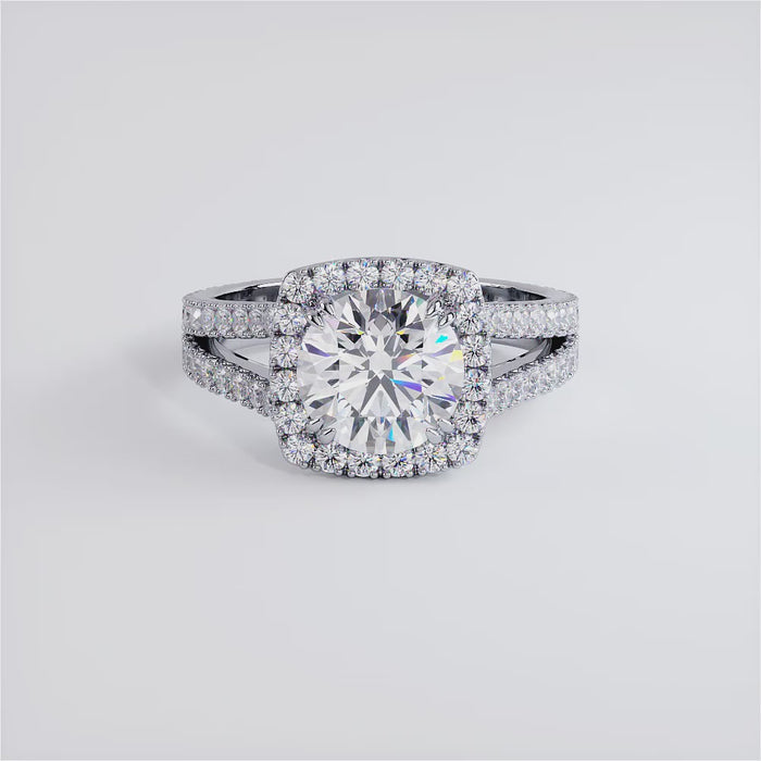2 Carat Round Brilliant Halo Split Shank French Cut