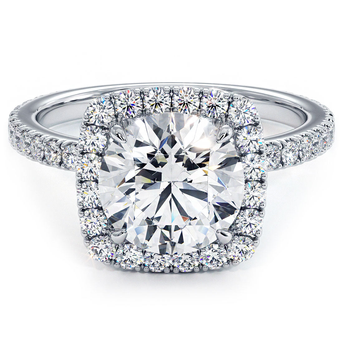 A high set squarish halo engagement ring set with 100% natural earth mined Diamond (not treated or enhanced in any way).