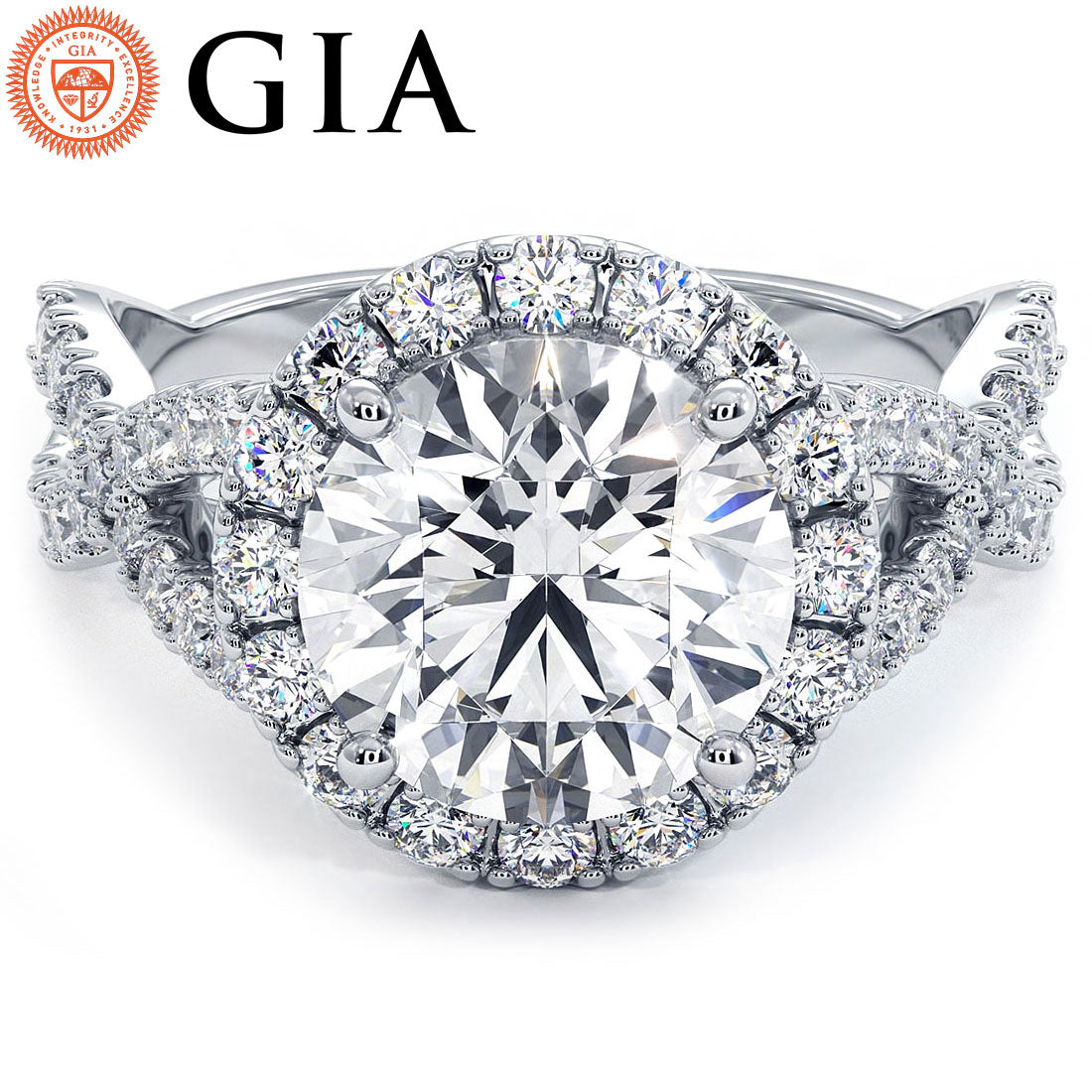 2 Carat Round Brilliant Infinity Twist Round Halo Micropavé