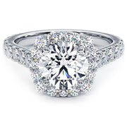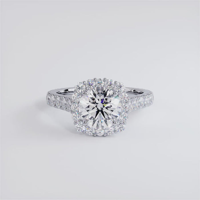 A vintage style micro prong set halo diamond engagement ring set with 2.00ct dew Round Cut VVS & Colorless (D-E-F) Moissanite.