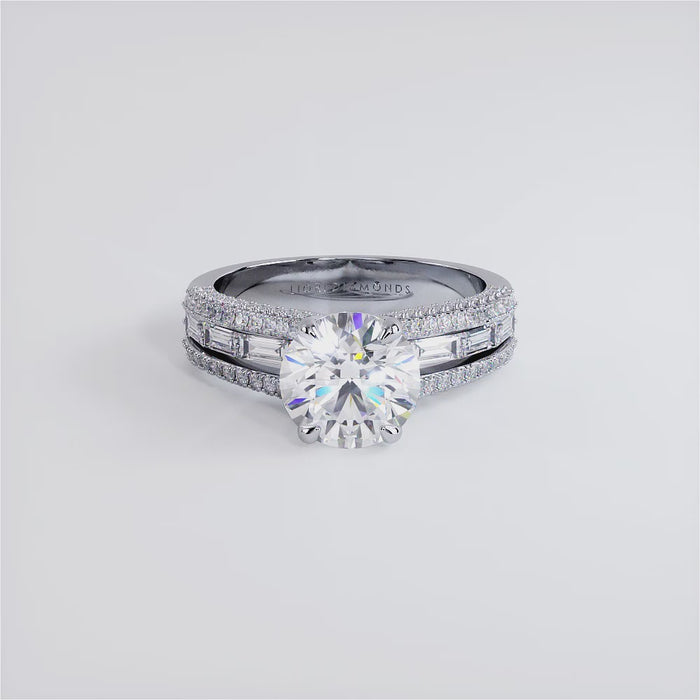 A micropavé & baguettes diamond engagement ring set with 2.00 Carat Round Cut Lab Grown Diamond.