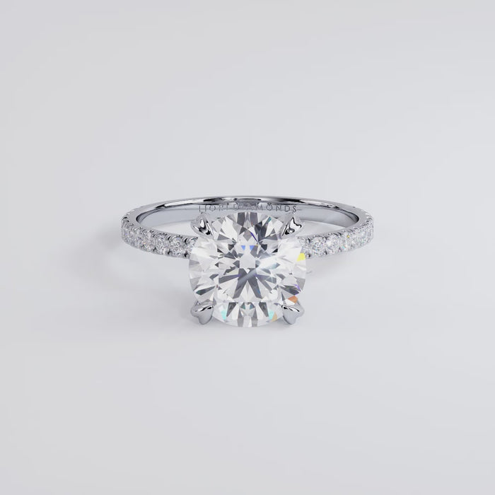 A petite micropavé eagle prongs diamond engagement ring set with 2.00 Carat Round Cut Lab Grown Diamond.