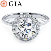 A petite halo micropavé diamond engagement ring set with 2.00 Carat Round Cut Lab Grown Diamond.