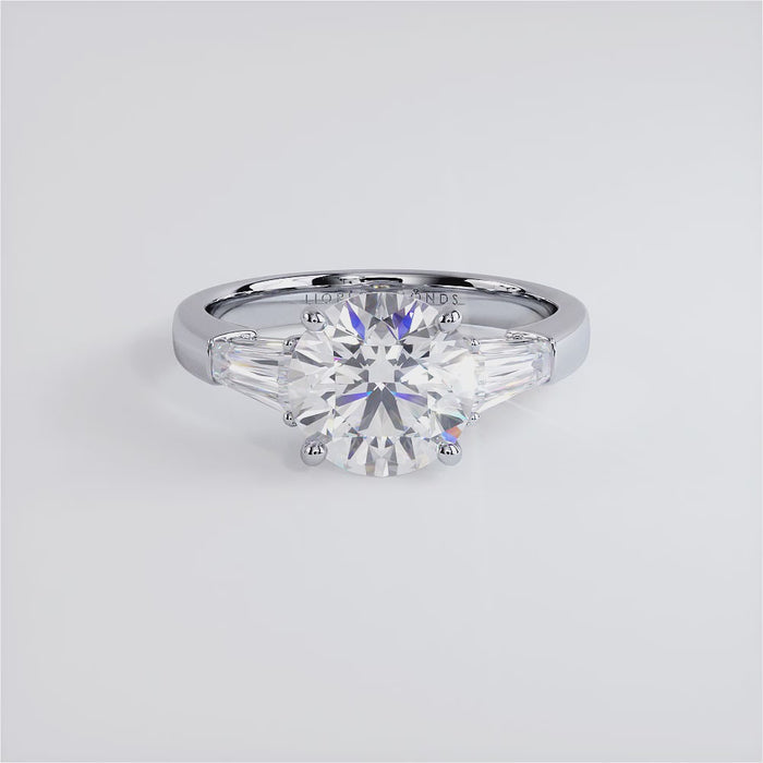 2 Carat Round Brilliant Tapered Baguette Three Stone
