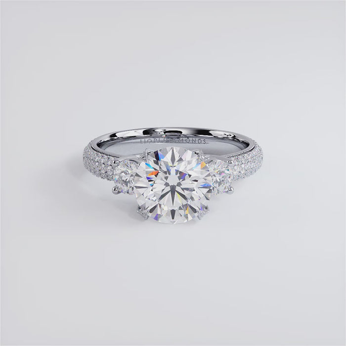 2 Carat Round Brilliant Three Stone Micropavé Eagle Prongs
