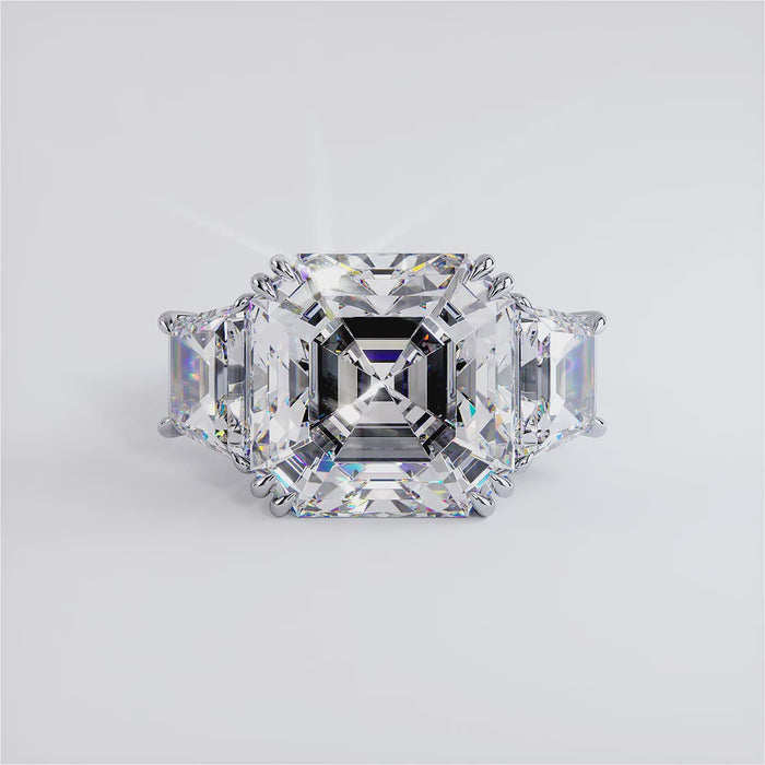 A Three stone diamond engagement ring Masterpiece! Set with GIA Certified lab grown Asscher cut  Diamond.