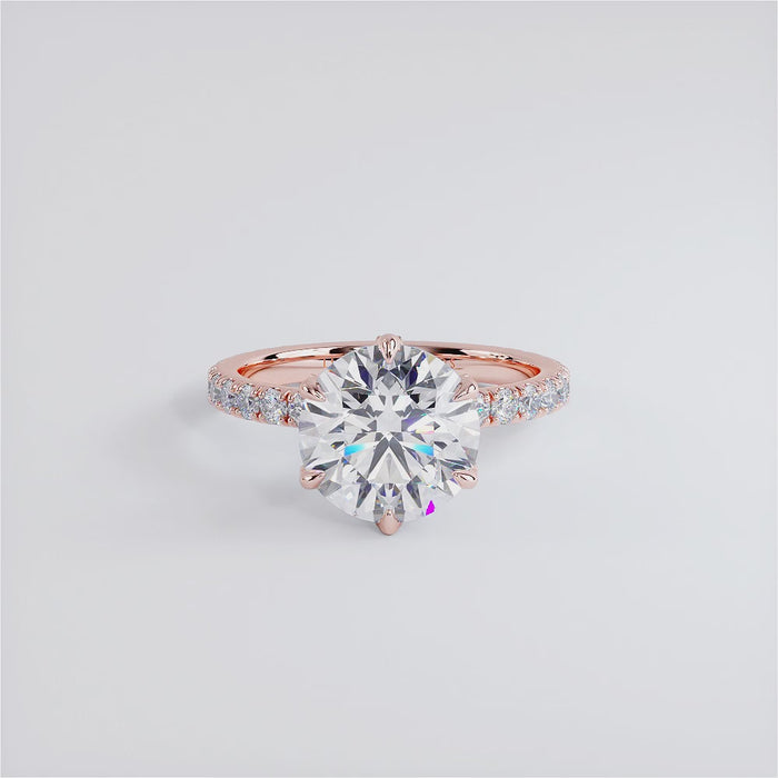 3.10ctw GIA Certified D-VS1 Round Brilliant Micropavé 6 Prong Petite Lab Grown Diamond Engagement Ring set in 14k Rose Gold