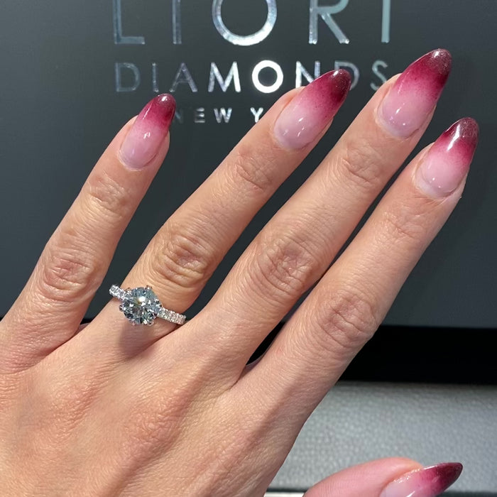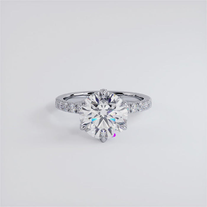 3.10ctw GIA Certified D-VS1 Round Brilliant Micropavé 6 Prong Petite Lab Grown Diamond Engagement Ring set in Platinum
