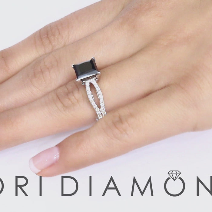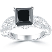 3.05 Carat Certified Princess Cut Black Diamond Engagement Ring 18k White Gold