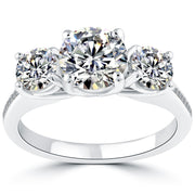 3.05 Carat E-SI2 Three Stone Natural Diamond Engagement Ring Set In Platinum