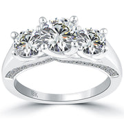 3.08 Carat E-SI1 Three Stone Natural Diamond Engagement Ring 18k White Gold