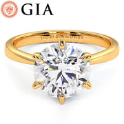 3.00ct GIA Certified F-VS2 Round Brilliant Petite Tapered 6 Prong Solitaire Lab Grown Diamond Engagement Ring set in 14k Yellow Gold