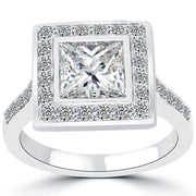 3.22 Carat G-SI1 Princess Cut Diamond Engagement Ring 14k White Gold Pave Halo