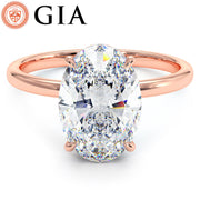 3.37ctw GIA Certified Oval Cut Petite Under Halo Lab Grown Diamond Engagement Ring set in 14k Rose Gold