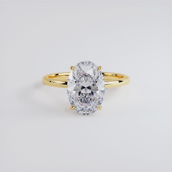 A classic diamond solitaire under halo engagement ring set with 3 Carat Oval cut Lab Grown Diamond.