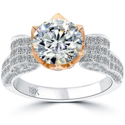 3.38 Carat G-VS2 Natural Round Diamond Engagement Ring 18k Rose Gold White Gold