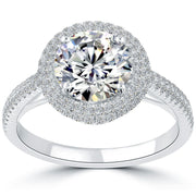 This is a truly unique vintage inspired engagement ring, set in platinum. A majestic 2.80 ctw I-SI2 round brilliant diamond sits proudly in the center of this ring. Shimmering micro pave set diamonds create a halo around the splendid center diamond. Pave set diamonds continue onto the band, and are even found in the heart detail on the gallery of the ring. All of the sparkling side stones in this ring total 0.65 ctw and are F-VS in color and clarity. This vintage style engagement ring will be a piece she will treasure forever.