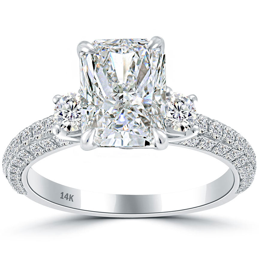 3.47 Carat H-SI2 Radiant Cut Natural Diamond Engagement Ring 14k White Gold