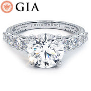 3.47ctw GIA Certified Round Brilliant Micropavé & Graduated Side Lab Grown Diamond Engagement Ring 14k White Gold