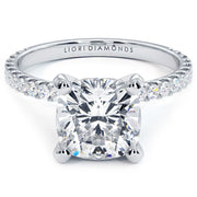 A petite classic diamond solitaire engagement ring set with 3.50ct dew Cushion Cut  VVS & Colorless (D-E-F) Moissanite.