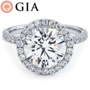 A petite halo micropavé diamond engagement ring set with 3.50 Carat Round Cut Lab Grown Diamond.
