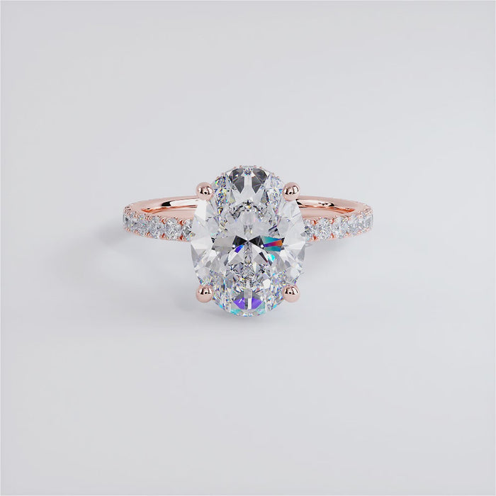 3.55ctw Oval Cut Under Halo Petite Micropavé Lab Grown Diamond Engagement Ring set in 14k Rose Gold