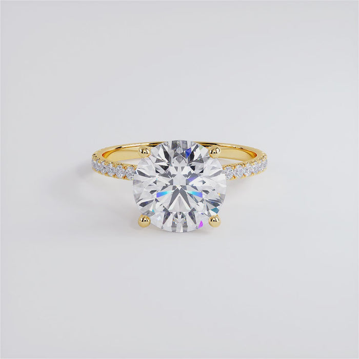 3.61ctw GIA Certified Round Brilliant Under Halo Petite Micropavé Lab Grown Diamond Engagement Ring set in 14k Yellow Gold