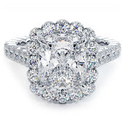 A Beaded Prong Halo vintage style diamond engagement ring set with 3.00ct dew Cushion Cut VVS & Colorless (D-E-F) Moissanite.