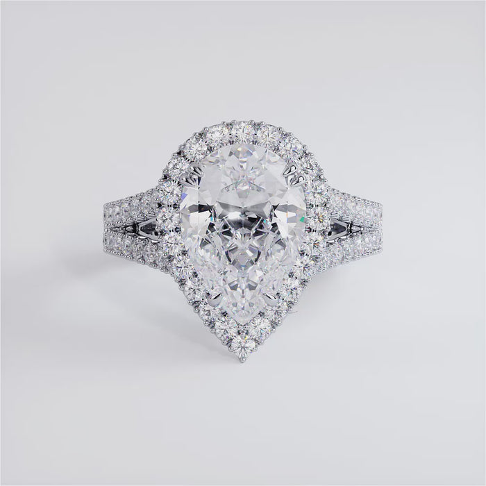 3 Carat Pear Shape French Cut Halo Split Shank