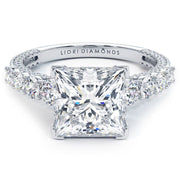A micropavé & graduated side diamond engagement ring set with 3.00ct DEW Princess Cut VVS & Colorless (D-E-F) Moissanite.