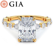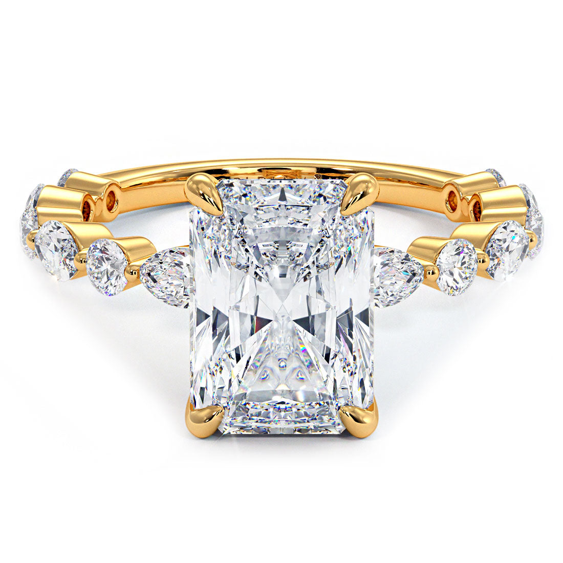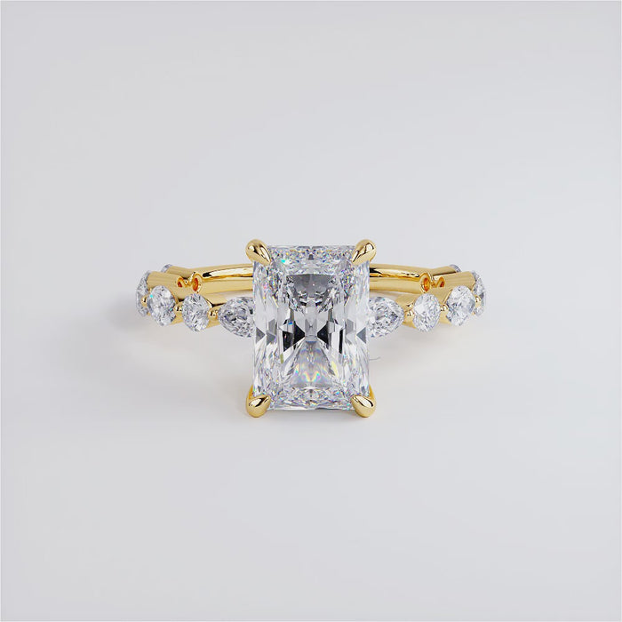An alternating round & marquise diamonds engagement ring set with 3 carat Radiant cut lab grown diamond.