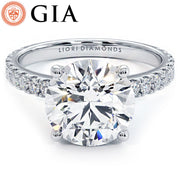 A petite micro prong set diamond engagement ring set with 3.00 Carat Round Cut Lab Grown Diamond.