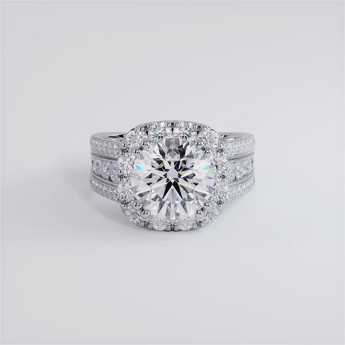 3 Carat Round Brilliant Vintage Milgrain Style Large Halo