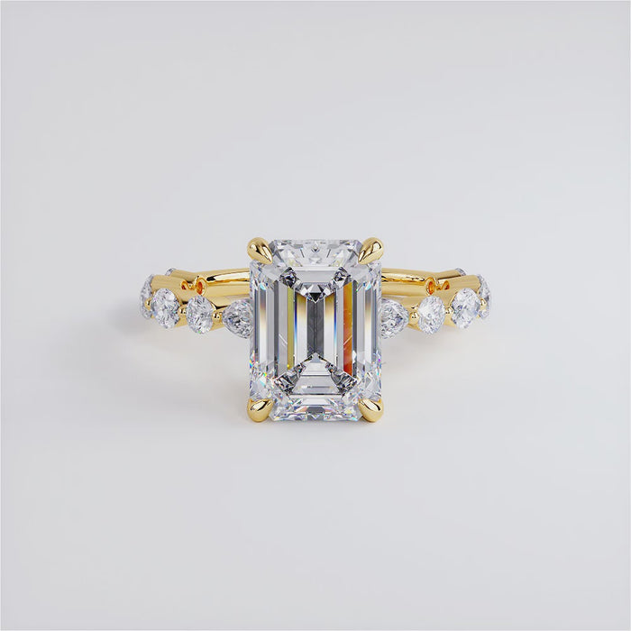 4.19ctw GIA Certified Emerald Cut Alternating Round & Marquise Lab Grown Diamond Engagement Ring set in 14k Yellow Gold