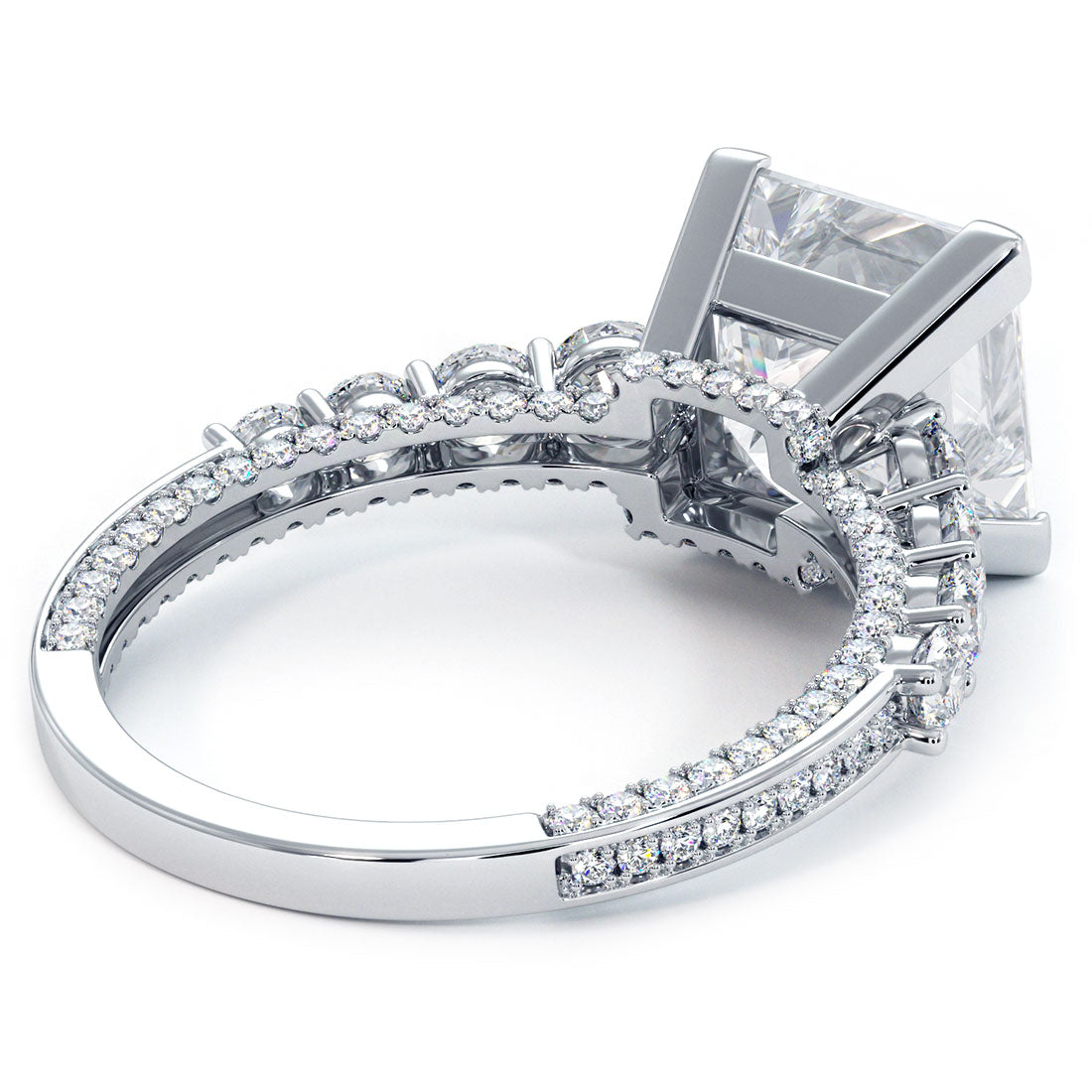 A micropavé & graduated side diamond engagement ring set with 3 Carat Princess Cut Lab Grown Diamond.