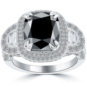 4.53 Carat Cushion Cut Natural Black Diamond Engagement Ring 14k Vintage Style