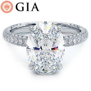 4.95ctw GIA Certified F-VS1 Oval Cut Trio Micropavé Lab Grown Diamond Engagement Ring set in 18k White Gold