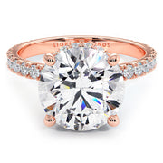 4.70ctw Round Brilliant Under Halo Petite Micropavé Lab Grown Diamond Engagement Ring set in 14k Rose Gold