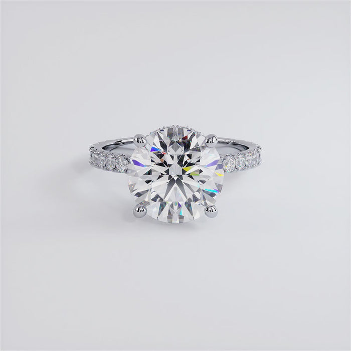 4.70ctw Round Brilliant Under Halo Petite Micropavé Lab Grown Diamond Engagement Ring set in 14k White Gold