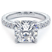 A petite micro prong set diamond engagement ring set with 4.00ct dew Cushion Cut VVS & Colorless (D-E-F) Moissanite.