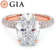 A trio micropavé diamond engagement ring set with 4 Carat Oval Cut Lab Grown Diamond.