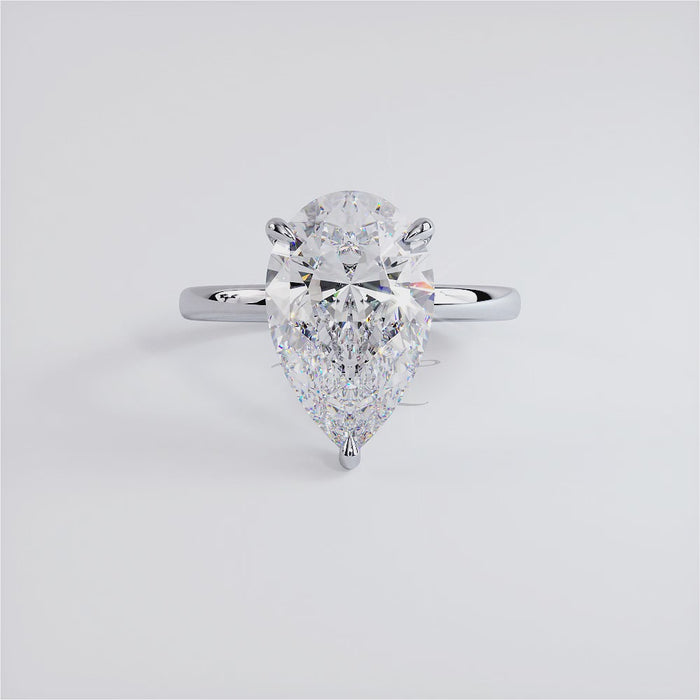 A classic petite wire basket diamond solitaire engagement ring set with 4 Carat Pear Shape Lab Grown Diamond.