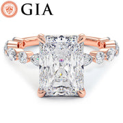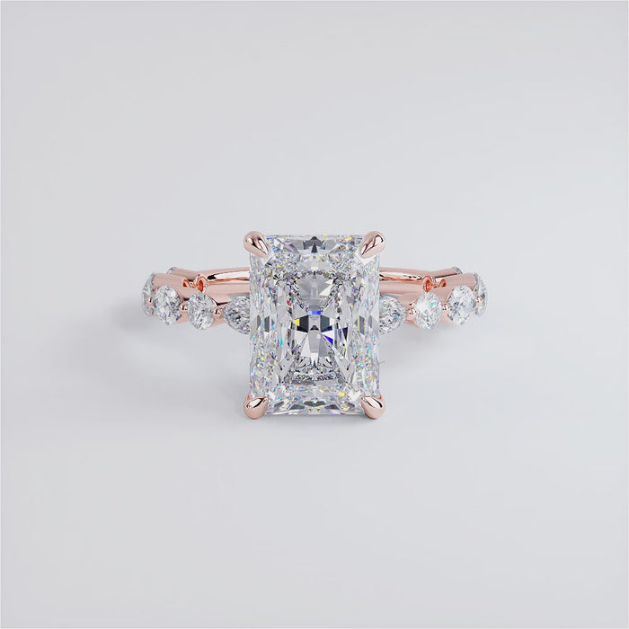 An alternating round & marquise diamonds engagement ring set with 4 carat Radiant cut lab grown diamond.