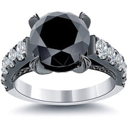 5.32 Carat Vintage Style Natural Black Diamond Engagement Ring 14k Black Gold
