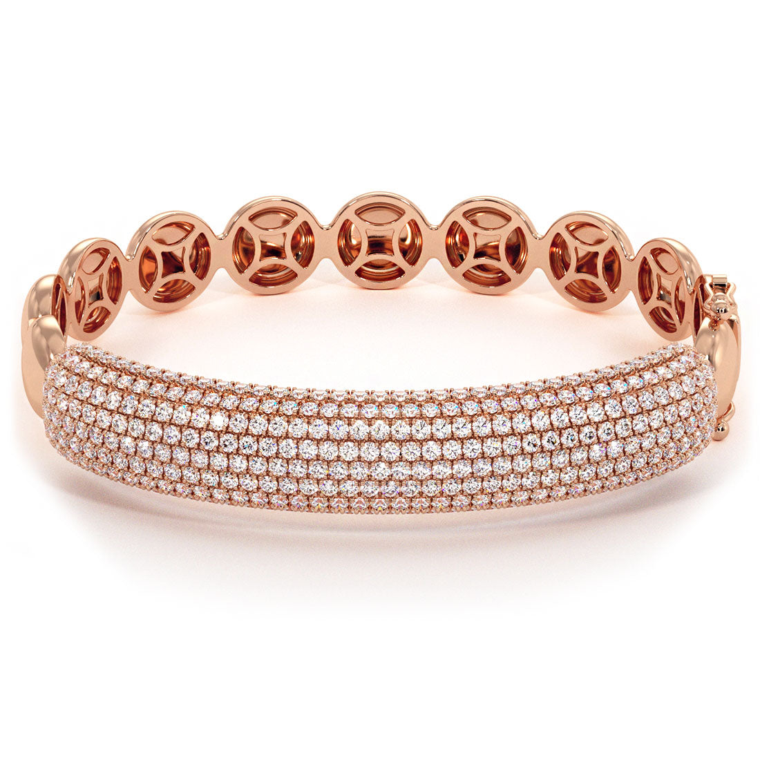 5.35 Carat Pave Diamond Beaded Bangle Cuff Bracelet 14k Rose Gold