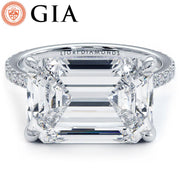 5.59ctw GIA Certified E-VVS2 Emerald Cut East to West Petite Micropavé Lab Grown Diamond Engagement Ring set in Platinum